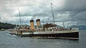 The design was intended to hide the paddle box and make her appear to be a turbine steamer. It nearly works.